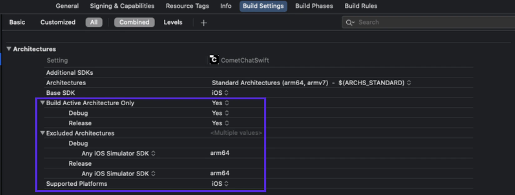 CometChatProframework build on Swift, you have to ensure the required libraries are embedded. This can be done by setting the “Always Embed Swift Standard Libraries” checkbox in your target’s build settings to “Yes”: