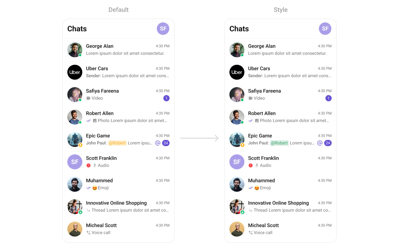 Configure the message list where mention-styled bubbles are displayed