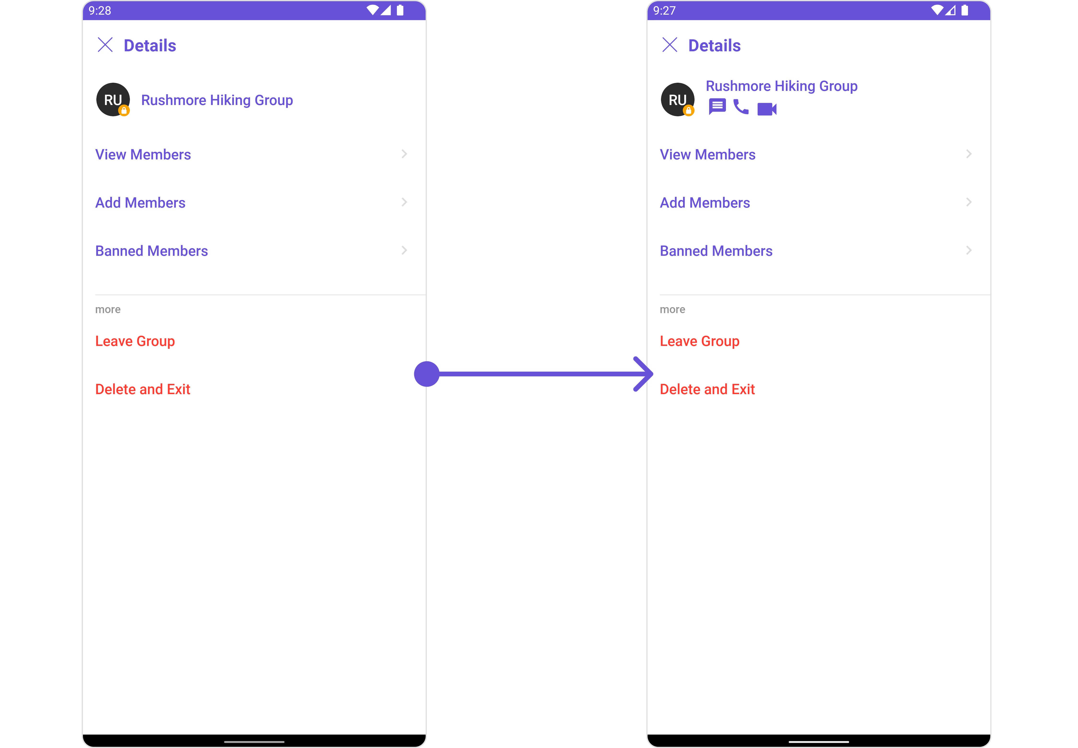 CometChatDetails, as a component, offers flexible integration options, allowing it to be launched directly via button clicks or any user-triggered action. Additionally, it seamlessly integrates into tab view controllers. With banned members, users gain access to a wide range of parameters and methods for effortless customization of its user interface. The following code snippet exemplifies how you can seamlessly integrate the CometChatDetails component into your application. Since CometChatDetails is a custom view, It can be launched by adding the following code snippet into the XML layout file.