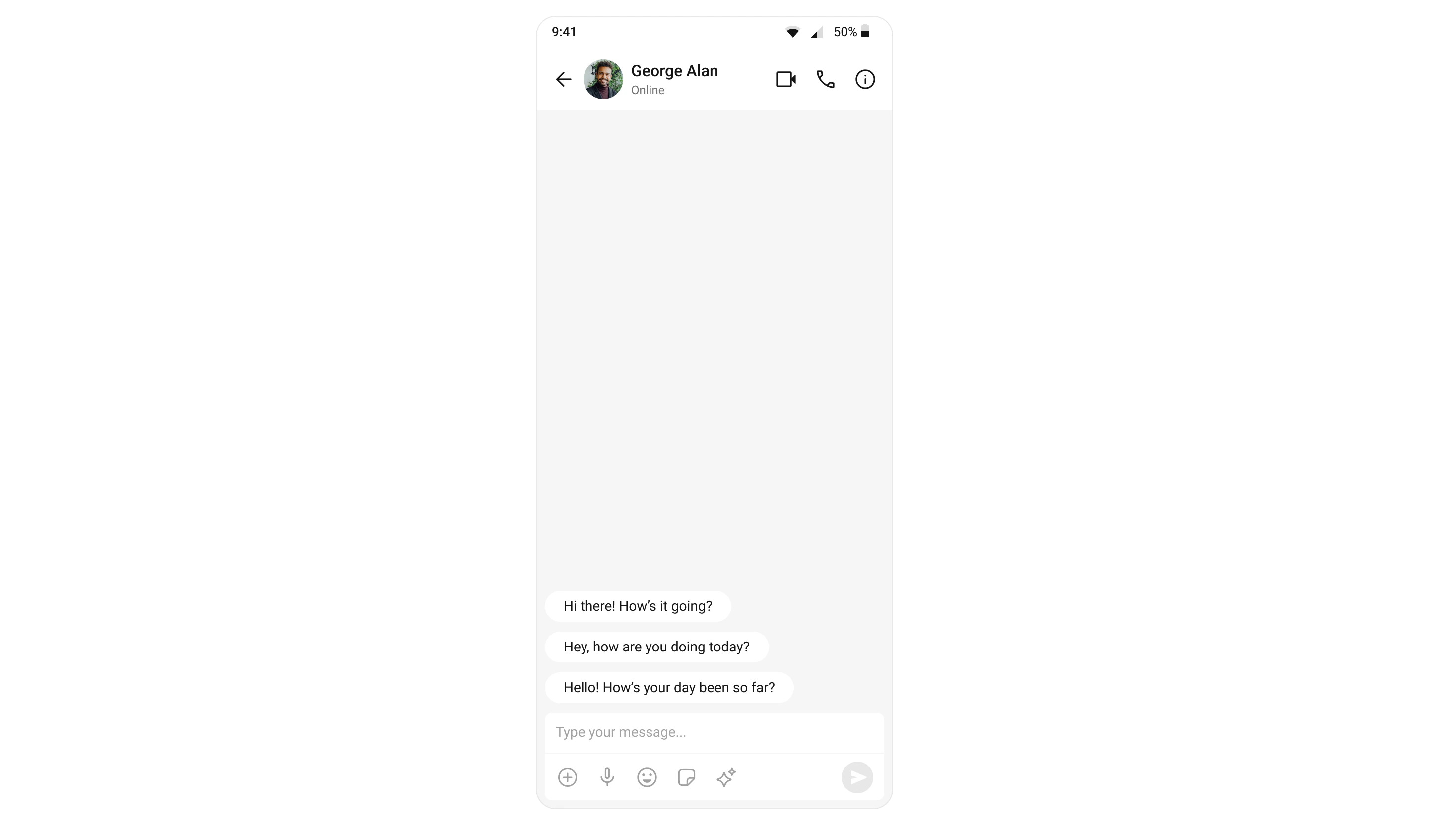 When a user initiates a new chat, the UI kit displays a list of suggested opening lines that users can select, making it easier for them to start a conversation. These suggestions are powered by CometChat’s AI, which predicts contextually relevant conversation starters. For a comprehensive understanding and guide on implementing and using the Conversation Starters, refer to our specific guide on the Conversation Starter. Once you have successfully activated the Conversation Starter from your CometChat Dashboard, the feature will automatically be incorporated into the MessageList Widget of UI Kits.