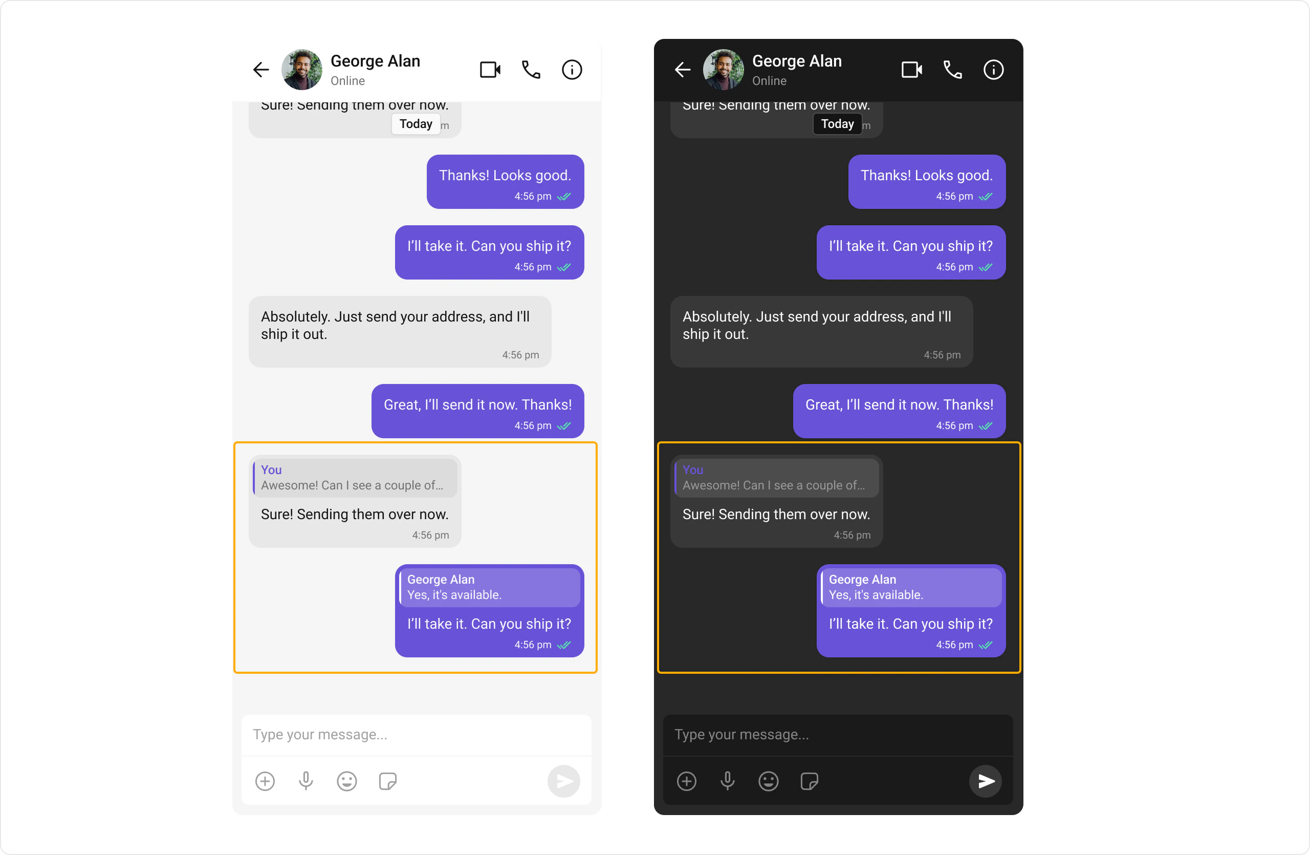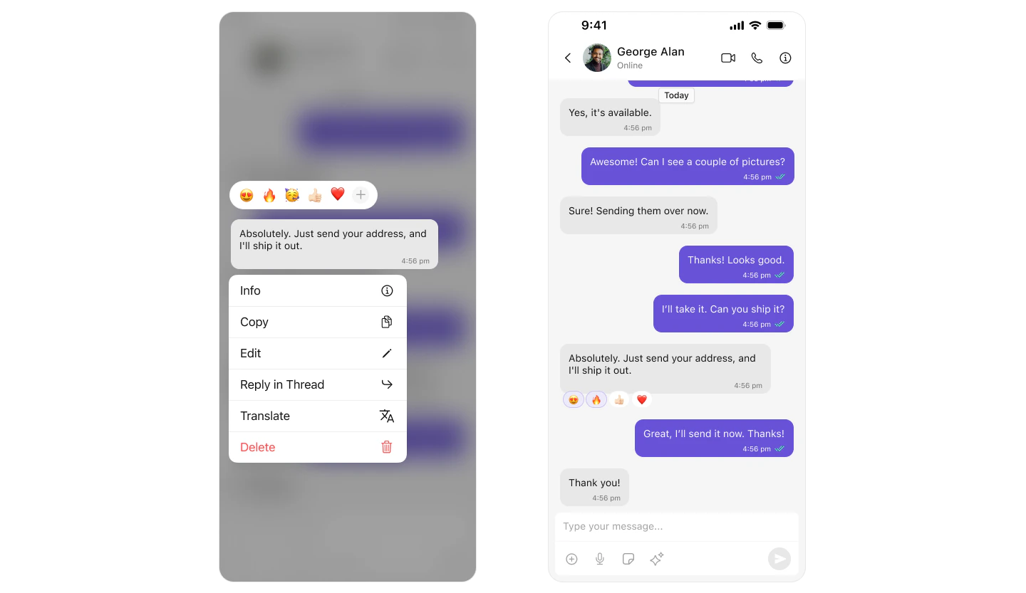 // Users can swipe right on a message or tap "Reply" in message actions