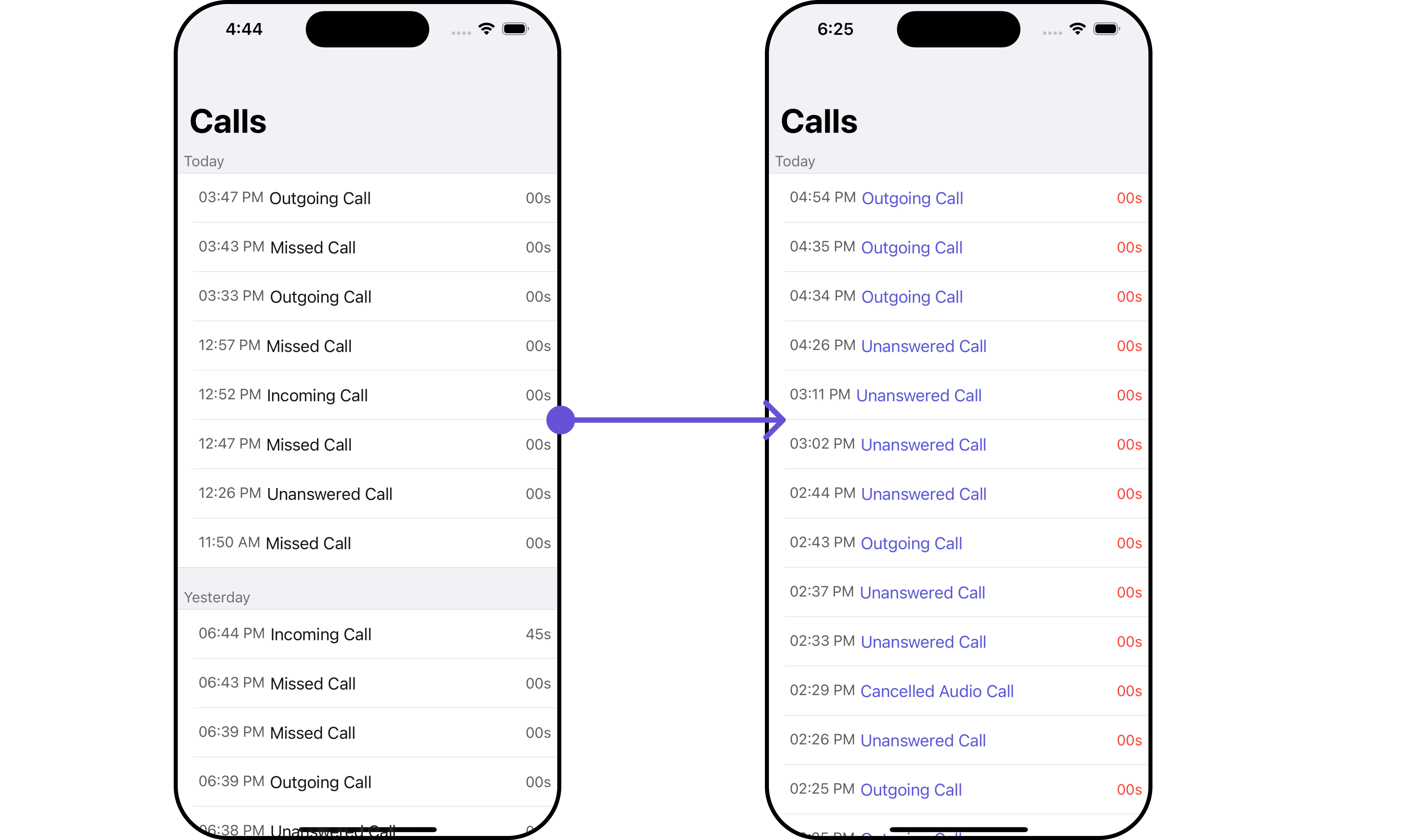 The callRequestBuilder enables you to filter and customize the call list based on available parameters in callRequestBuilder. This feature allows you to create more specific and targeted queries during the call. The following are the parameters available in callRequestBuilder Example In the example below, we are applying a filter based on limit , calltype and call status.- Swift
