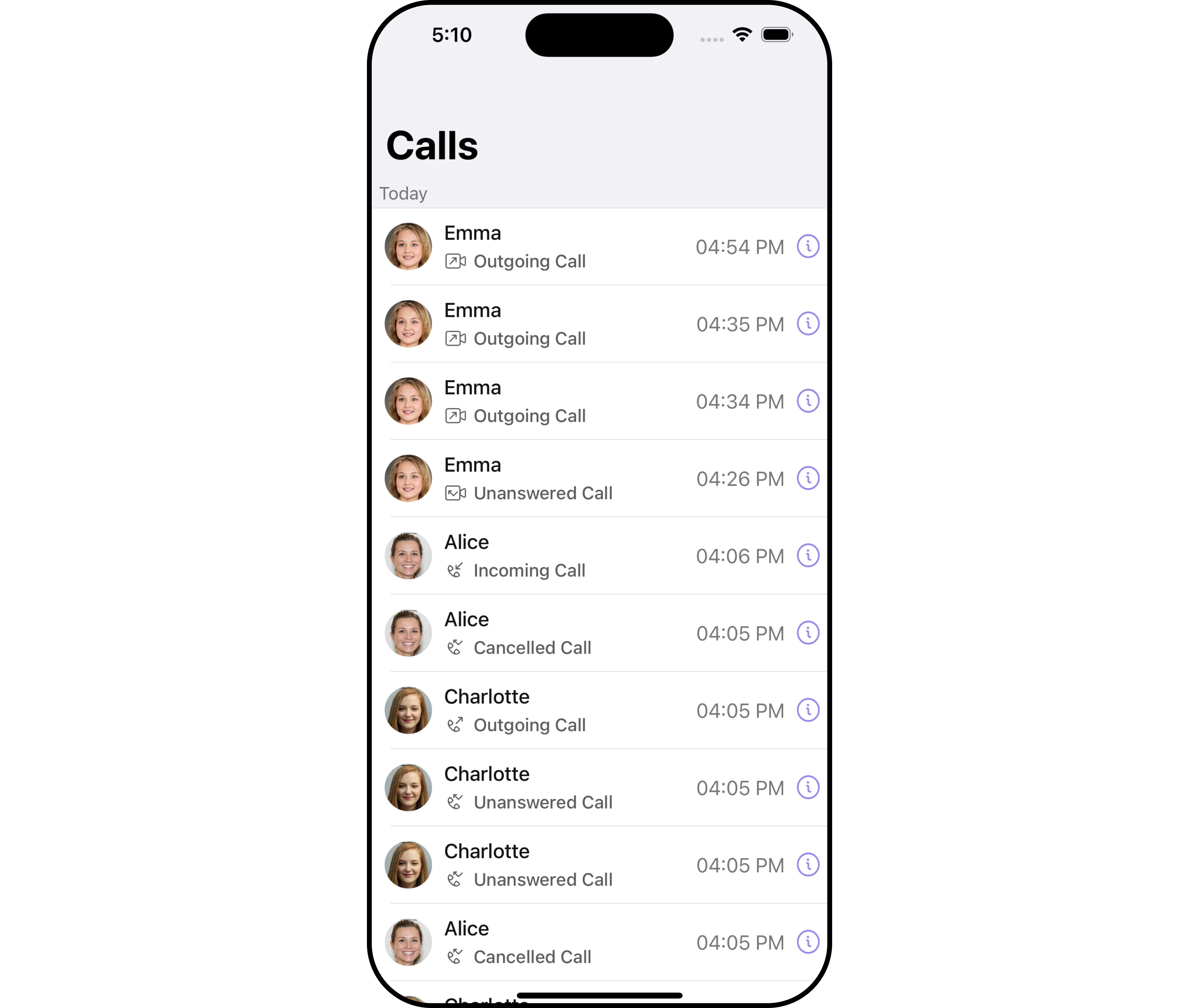 CometChatCallLogs is a Component that shows the list of Call Log available . By default, names are shown for all listed users, along with their avatar if available.