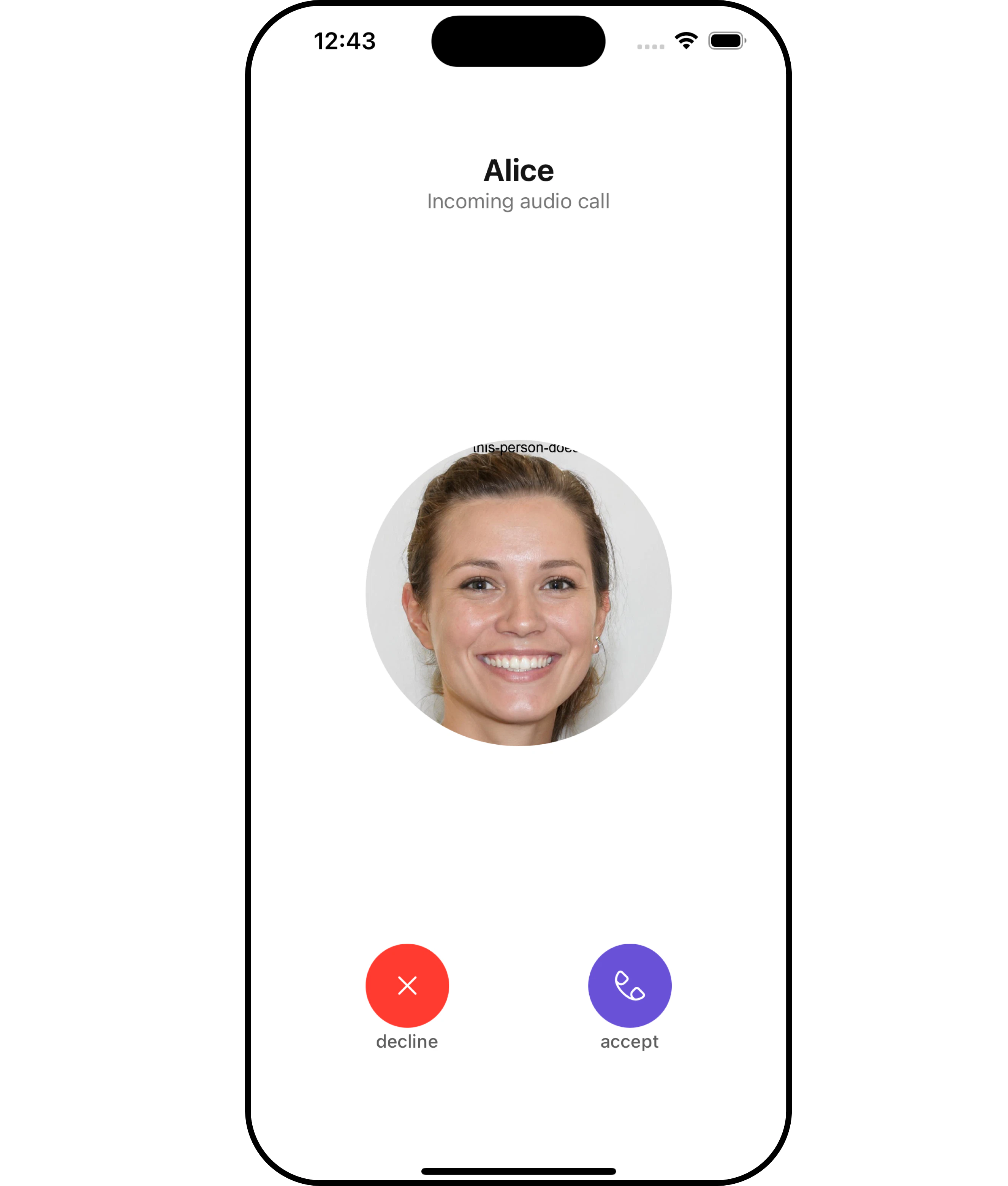 These are a set of small functional customizations that allow you to fine-tune the overall experience of the component. With these, you can change text, set custom icons, and toggle the visibility of UI elements. Example In this example, we’re enhancing the interface by customizing the accept and decline button icons. By setting custom icons for both the accept and decline buttons, users can enjoy a more visually appealing and personalized experience. This level of customization allows developers to tailor the user interface to match the overall theme and branding of their application.