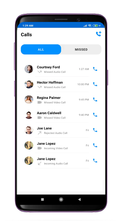 CometChatCalls is custom RecyclerView which will help you to display list of calls.