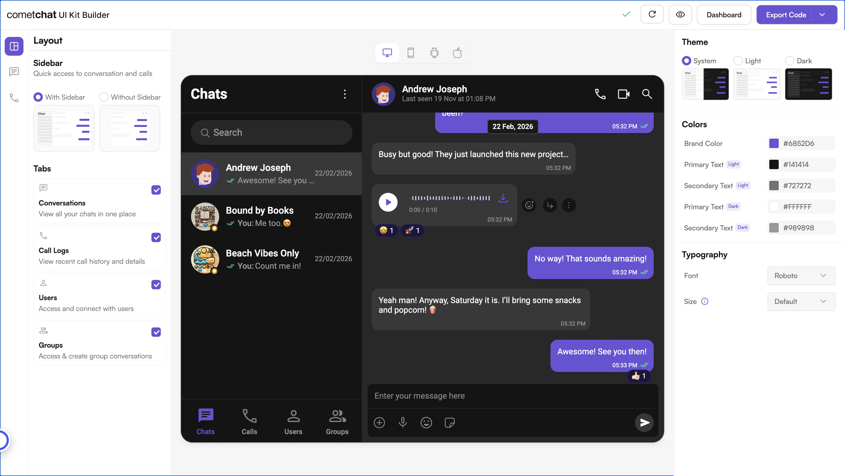 Experience the CometChat Widget Builder in action:Launch Live Demo